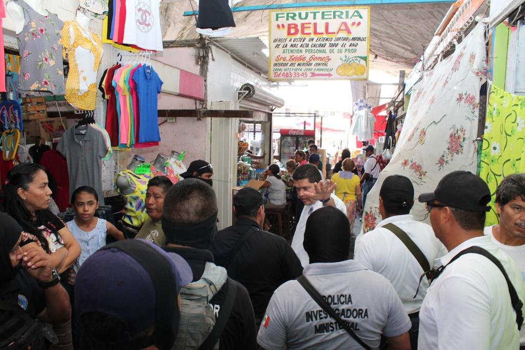 Durante este acto, elementos de las distintas fuerzas de seguridad hicieron recorridos de vigilancia en las principales naves y pasillos del mercado central, donde anteriormente también habían hecho decomisos, en atención a denuncias por extorsión.