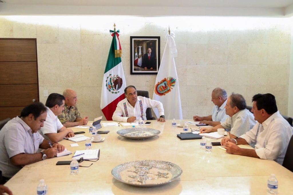 ACAPULCO.— El gobernador Héctor Astudillo Flores y el coordinador Nacional de Fertilizantes, Jorge Gage Francois, junto con sus respectivos equipos de trabajo, revisan el proceso y coordinación para la distribución del fertilizante gratuito en todas las regiones del estado. Asistieron a la reunión el secretario de Agricultura, Ganadería, Pesca y Desarrollo Rural, Juan José Castro Justo y el Jefe de la Oficina del Gobernador, Alejandro Bravo Abarca, entre otros.