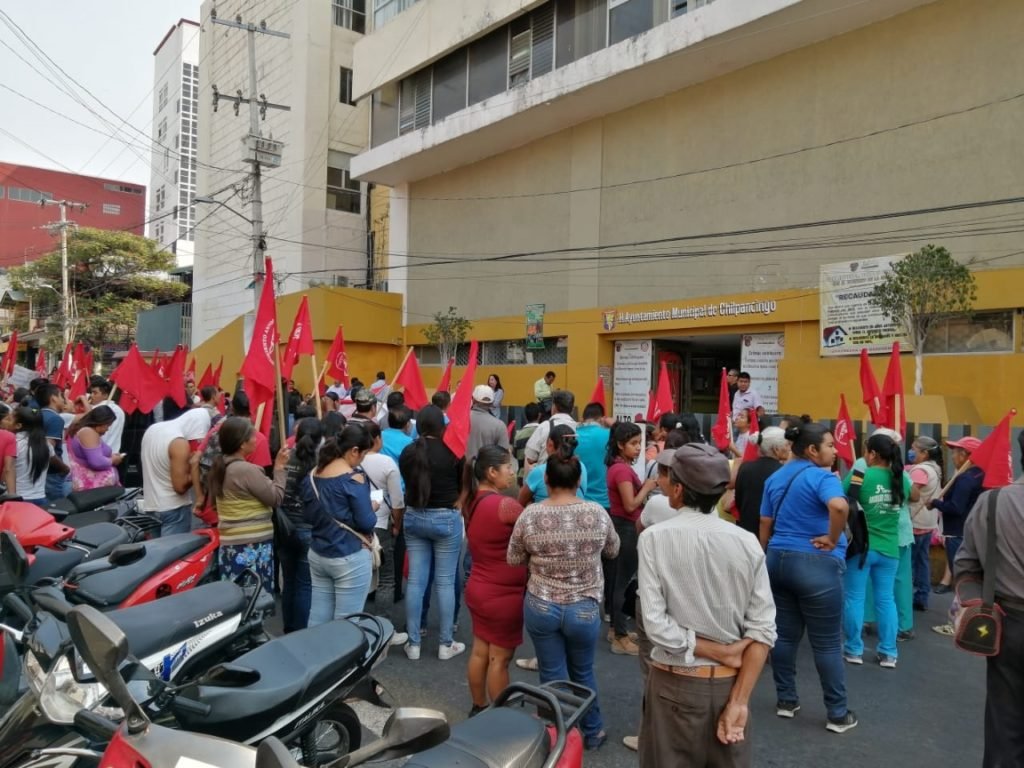 Desde las 10 de la mañana, un centenar de antorchistas llegaron a la sede del Ayuntamiento capitalino para exigir una audiencia con el alcalde Antonio Gaspar Beltrán.