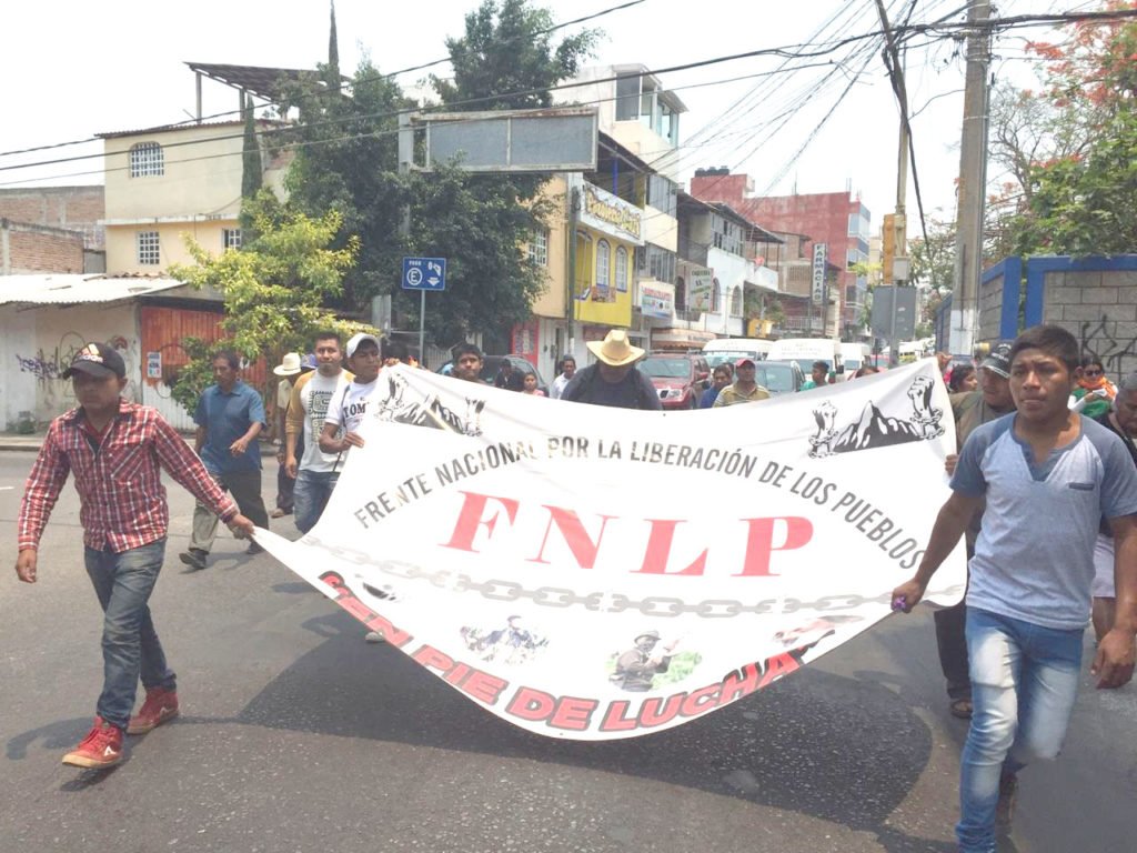 Integrantes del Frente Nacional por la Liberación de los Pueblos (FNLP) marcharon en Chilpancingo para exigir la puesta en libertad de cinco reclusos acusados de homicidio y secuestro.