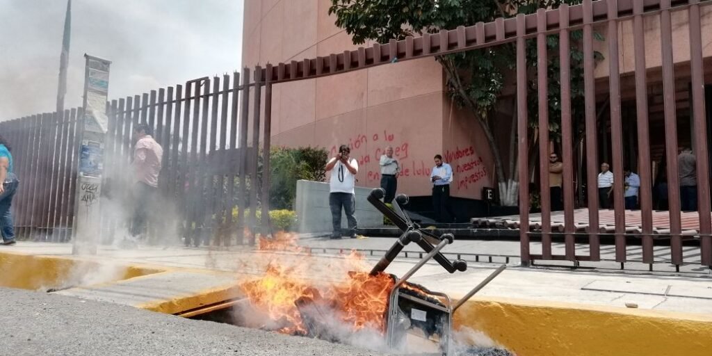 Ayer, nuevamente un grupo de la CETEG lanzó huevos a la sede del poder legislativo y quemó cajas de unicel en donde acusaban de traición a los diputados, esto por la recién aprobada Reforma Educativa.