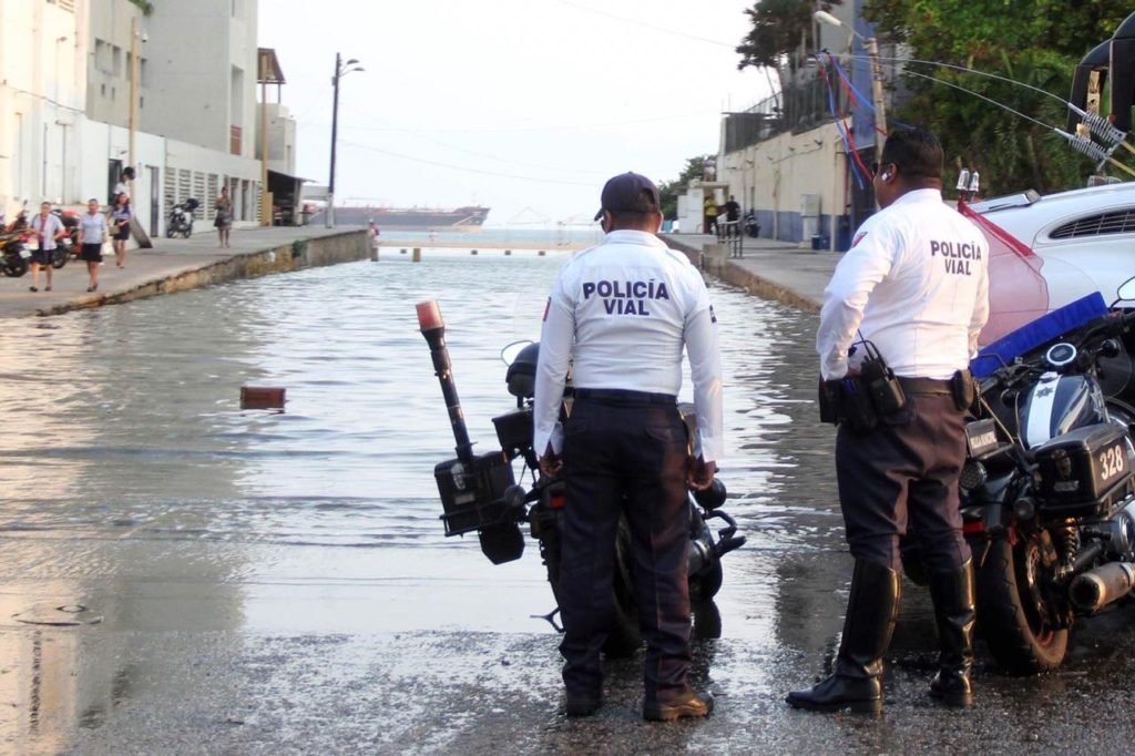 La coordinación de Protección Civil y Bomberos del municipio acordonó y restringió el acceso a la calle Juan de la Cosa, luego de que esta vía y una parte de la Costera, resultaran inundadas por agua de mar.