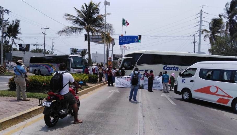 ACAPULCO.— Familiares de 16 integrantes del Consejo de Ejidos y Comunidades Opositoras a la Presa La Parota (CECOP), detenidos por los enfrentamientos ocurridos en la comunidad La Concepción, el 7 de enero del 2018, que dejaron 11 muertos, bloquearon este miércoles durante dos horas el bulevar de Las Naciones, para exigir su liberación.