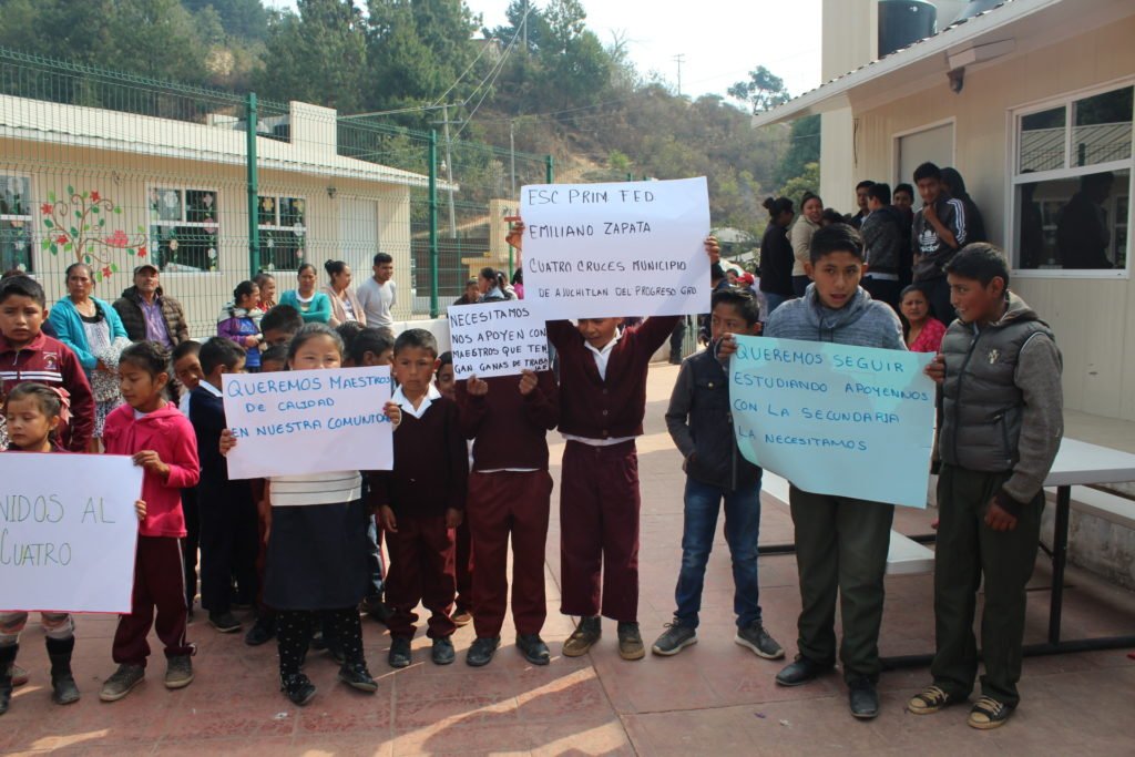 TECPAN.— Alumnos y padres de familia de la primaria federal “Emiliano Zapata”, ubicada en la comunidad serrana de Cuatro Cruces, municipio de Ajuchitlán del Progreso, exigen a la Secretaría de Educación Guerrero (SEG) que manden maestros responsables y con ganas de trabajar ya que desde hace varios años, solo suben a dar clases cuando quieren y afectan el aprendizaje de 80 niños.