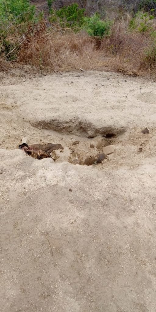 Ahí hallaron el cuerpo de un hombre semi-enterrado, con un tiempo aproximado de 4 a cinco días estar en ese lugar, así que estaba descompuesto.