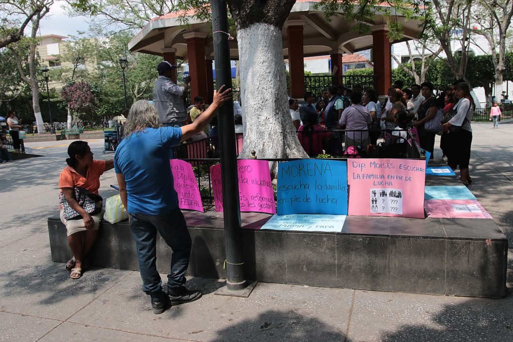 En noviembre del año pasado el diputado de Morena, Moisés Reyes Sandoval, presentó una iniciativa de reforma al Código Civil del Estado para modificar la redacción de cinco artículos, de tal forma que el matrimonio no se restrinja a un vínculo entre hombre y mujer, sino entre dos personas, sin distinguir género o preferencias sexuales.