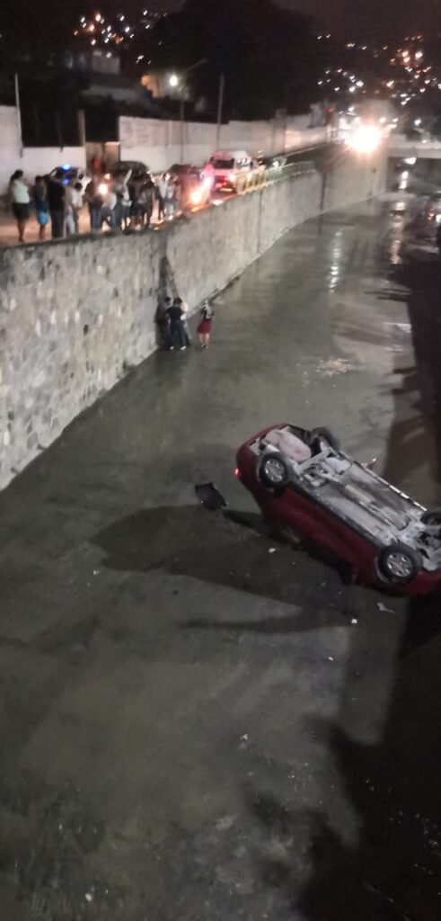 El auto cayó de frente y luego quedó con la llantas hacía arriba, el conductor como pudo logró salir de la unidad y tras gritar pidiendo auxilio, las personas del lavado de autos de enfrente lo auxiliaron a salir.