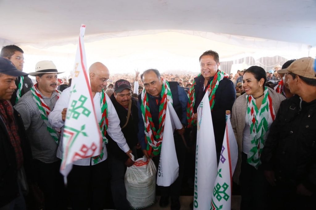 PUERTO DEL GALLO.— El gobernador Héctor Astudillo Flores comprometió su palabra con los campesinos de la Sierra y la cumplió. Este martes, acompañado por el coordinador nacional del programa de Fertilizante, Jorge Gage Francois; el delegado del gobierno federal, Pablo Amílcar Sandoval Ballesteros, y el diputado priista, Olaguer Hernández Flores, inició en esta localidad serrana la entrega del insumo agrícola.