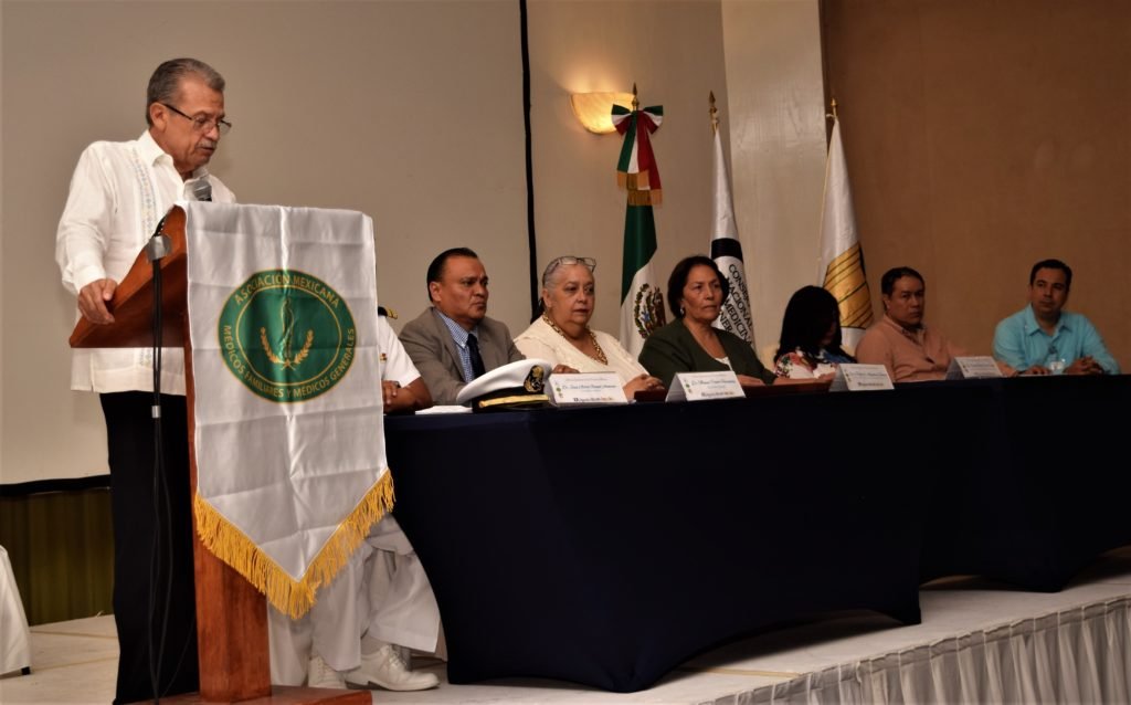 En la ceremonia, organizada por la Asociación Mexicana de Médicos Familiares y Médicos Generales, A.C., el Sistema de Educación Continua para el Médico General y Familiar, y el Colegio Mexicano de Médicos Familiares “Dr. Luis A Zavaleta de los Santos”, A.C., se rindió homenaje a la doctora otorrinolaringóloga, Laura Elena Domínguez Danache.