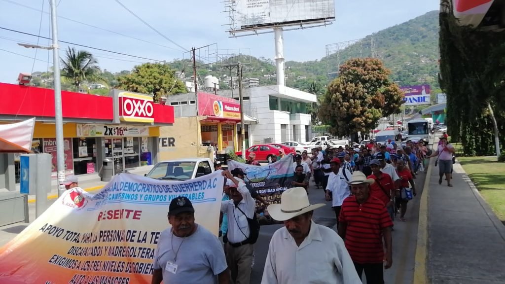 Alrededor de las 11:00 horas, los integrantes de las organizaciones sociales marcharon desde la glorieta de Puerto Marqués hacia la Promotora Turística, donde realizaron un mitin para reiterar sus demandas a los tres niveles de gobierno.