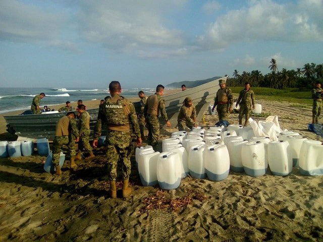 La Semar informó que durante una operación de vigilancia marítima y aérea, una aeronave de la Armada de México avistó una embarcación actuando de manera sospechosa, logrando con el uso de unidades de superficie (buques), aeronavales y personal de Infantería de Marina su interceptación, para inhibir la presunta acción delincuencial cuando la embarcación infractora dio el playazo (llegó a tierra firme).