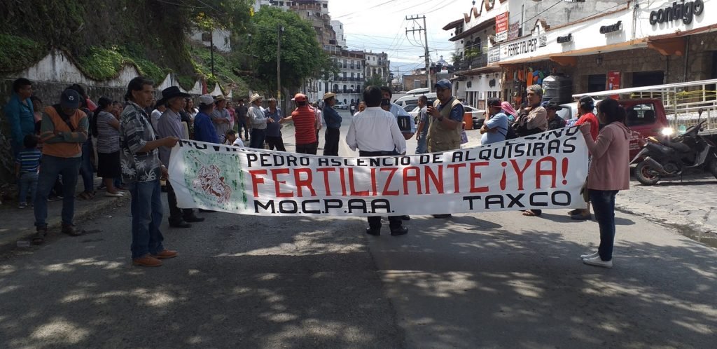 TAXCO.— Campesinos de 15 comunidades del municipio bloquearon por espacio de dos horas la carretera federal México-Acapulco, a la altura del distrito 06 de la Secretaría de Agricultura y Desarrollo Rural (Sader), para exigir la entrega inmediata de los vales canjeables por fertilizante por considerar que el tiempo de siembra se está pasando y el presidente Andrés Manuel López Obrador, no cumplió su palabra de entregar a tiempo el insumo.