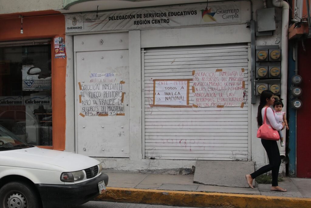 Este martes, los maestros en grupos no mayor a 20 integrantes llegaron algunas dependencias educativas donde cerraron y colocaron pancartas de protesta, como parte de los acuerdos de la asamblea representativa de miembros del magisterio disidente.