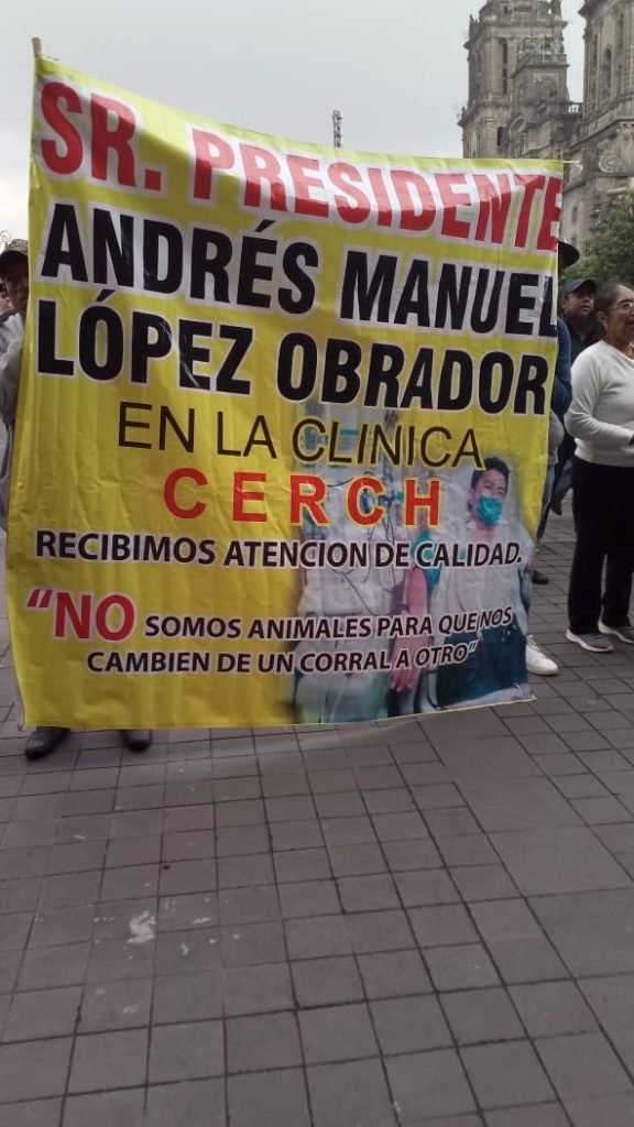 Familiares de 72 derechohabientes de la clínica del ISSSTE de Chilpancingo, realizaron una protesta afuera de Palacio Nacional, en la Ciudad de México, para exigir una audiencia con el presidente, Andrés Manuel López Obrador, porque, denunciaron, pretenden quitarles el servicio subrogado del servicio de diálisis a esas personas.