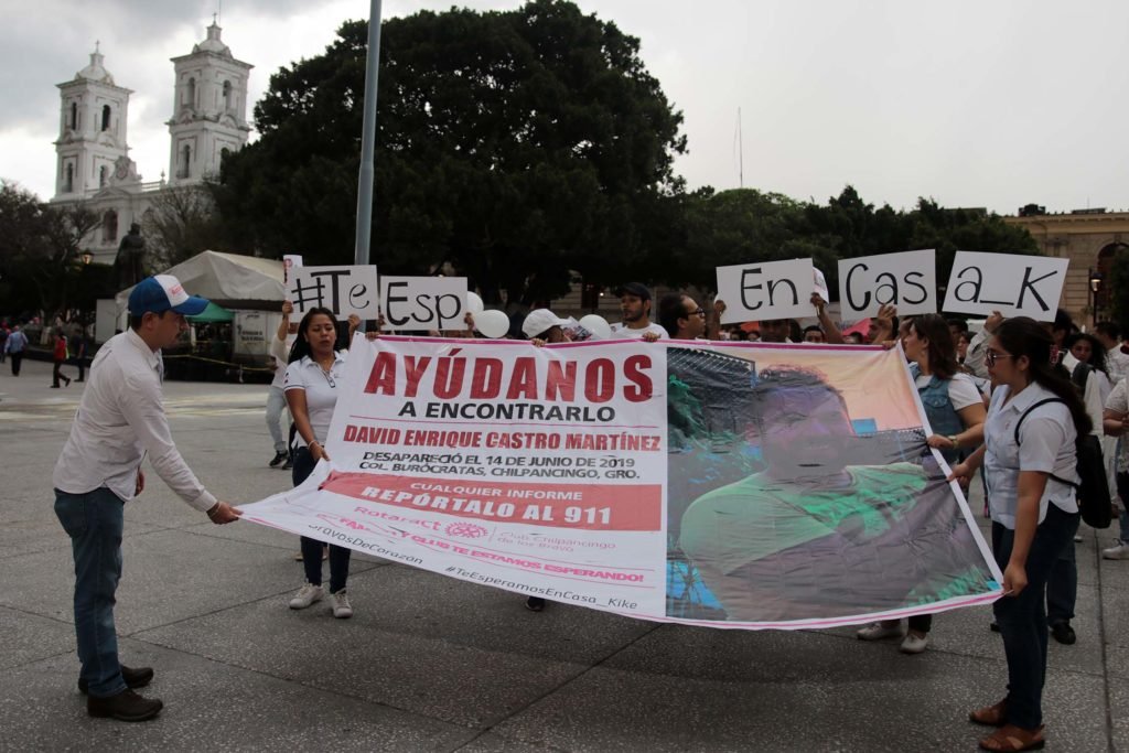 En el lugar sus amigos se pronunciaron por la presentación del joven miembro del Club Rotaract Chilpancingo, cuyos integrantes convocaron a la movilización y exigieron a las autoridades realizar las investigaciones sobre la desaparición David Castro, quien fue visto por última vez el viernes pasado en la colonia Burócratas de Chilpancingo a las 19: 00 horas. Vestía una playera azul con una franja naranja, un pantalón azul y llevaba una mochila negra.