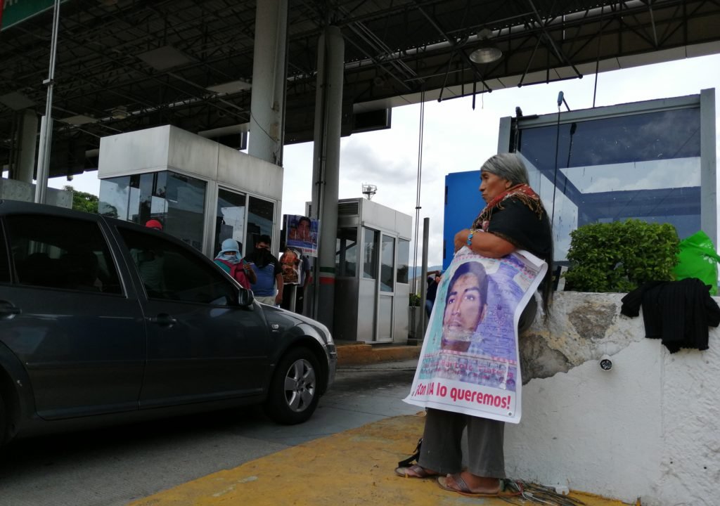 Este sábado, los padres de los 43 y normalistas de Ayotzinapa iniciaron una nueva jornada de lucha y tomaron desde las 11 de la mañana las casetas de peaje de Palo Blanco y La Venta de la Autopista del Sol, a donde llegaron a bordo de dos autobuses del servicio público de transporte.