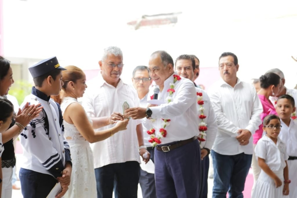 Acompañado por niñas y niños, padres de familia, profesores y personal administrativo, el Ejecutivo estatal compartió su beneplácito de estar presente en esa institución, al tiempo que precisó: