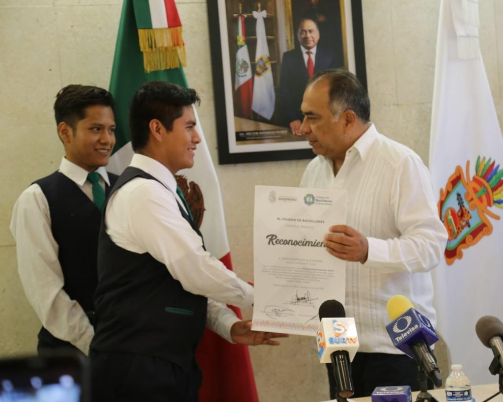 Astudillo los consideró como Orgullo Guerrero y les entregó un reconocimiento por su destacada participación en la “Expociencia Guerrero 2018” con el proyecto: Panel Solar Orgánico, obteniendo el primer lugar estatal y única acreditación Internacional para representar a México, en Abu Dabi, en la categoría Medio Superior, área Medio Ambiente, con registro EGRO- 1806HI.