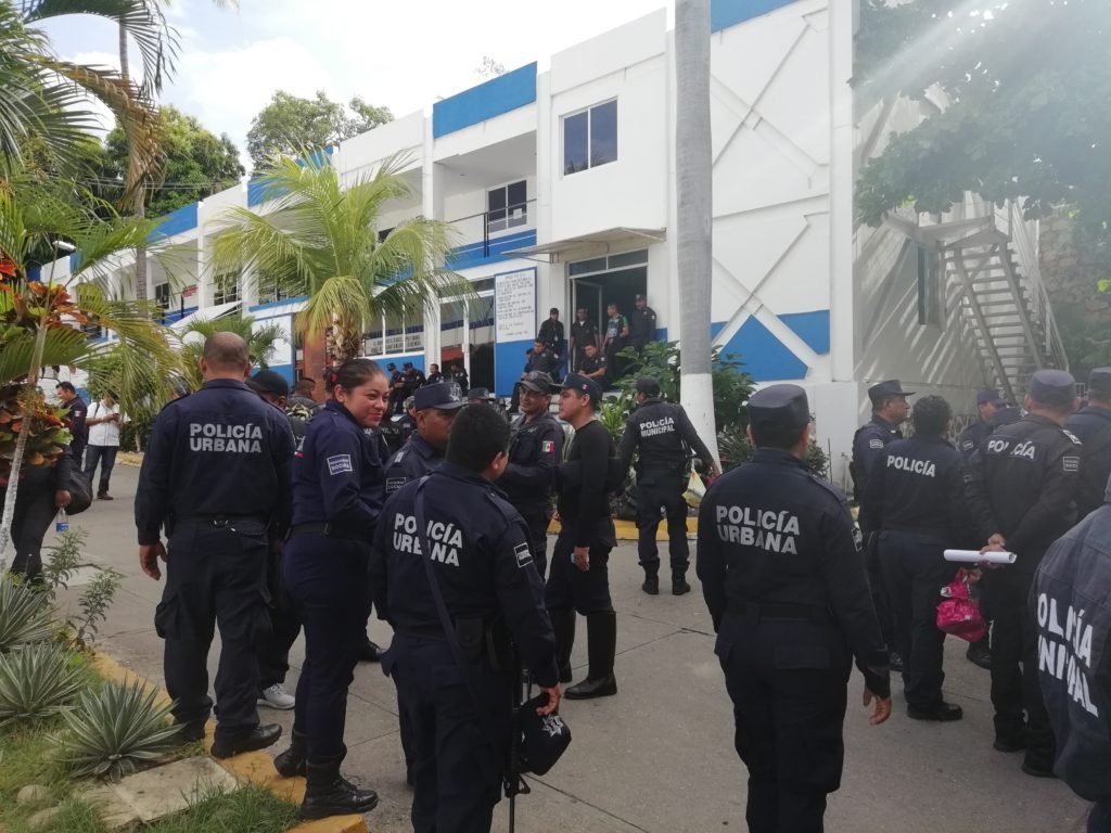 ACAPULCO.— Más de 300 policías preventivos municipales de Acapulco realizaron la mañana de este viernes un paro laboral y protestaron dentro de las instalaciones de la Secretaría de Seguridad Pública, por el cambio de horarios de trabajo y para pedir mejores salarios, seguro de vida, armamento, uniformes y patrullas.