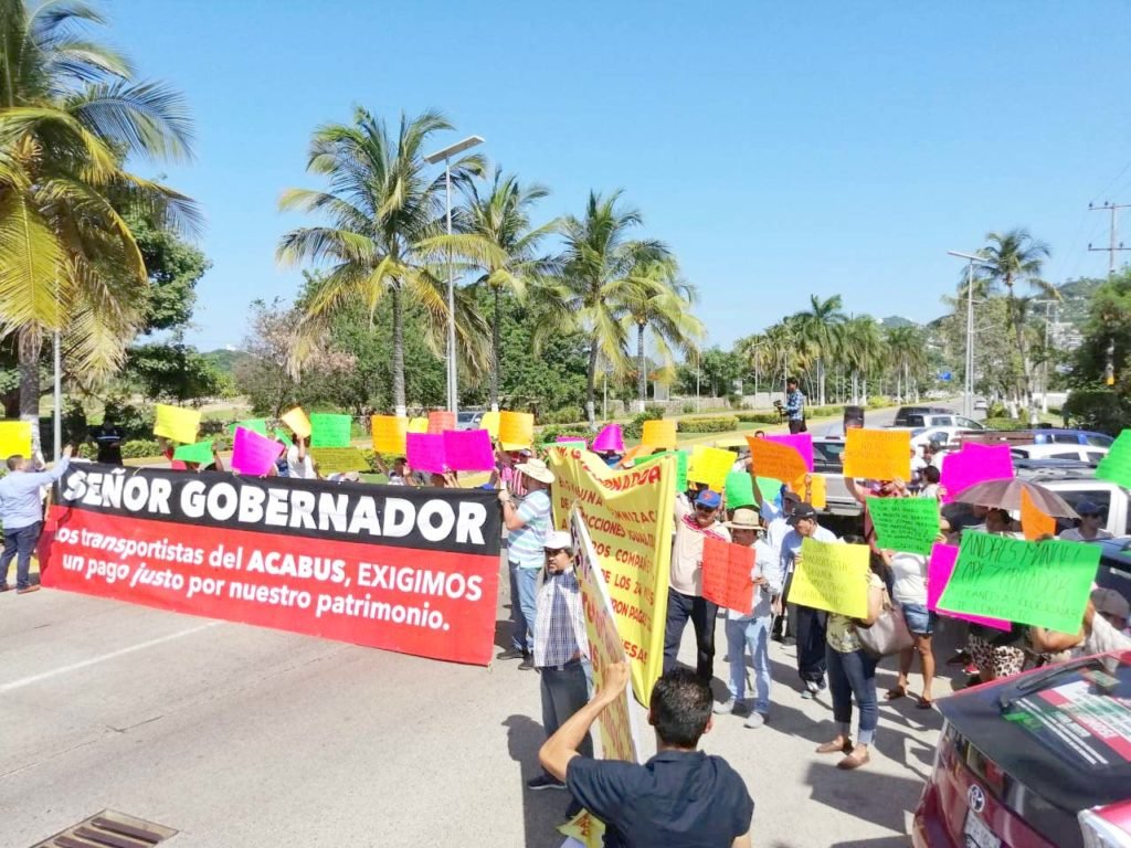 ACAPULCO.— Exsocios del Sistema de Transporte Acabús bloquearon durante dos horas de manera intermitente el boulevard de Las Naciones, a la altura de la Promotora Turística (Protur) para exigir al gobierno del estado que iguale la cantidad de indemnización que se pagó a otro grupo de accionistas, que recibió el doble de dinero.