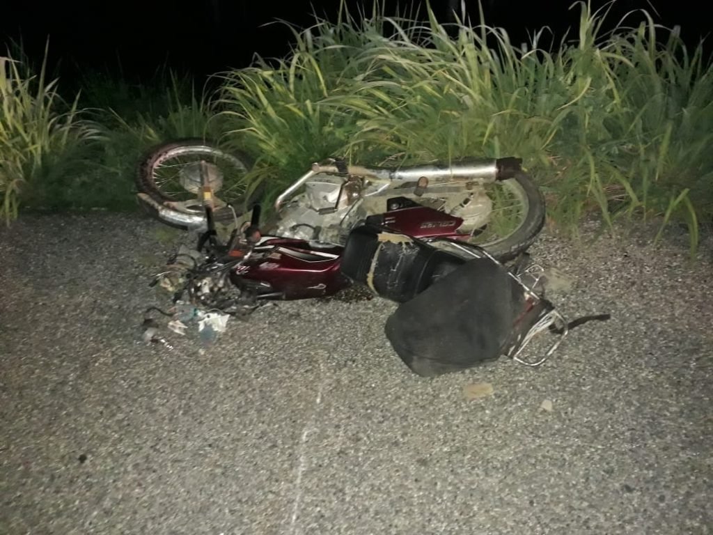 A unos 100 metros del cadáver estaba una motocicleta Honda, de color guinda, tipo CGL150, sin placas, la cual presentaba daños en el frente.