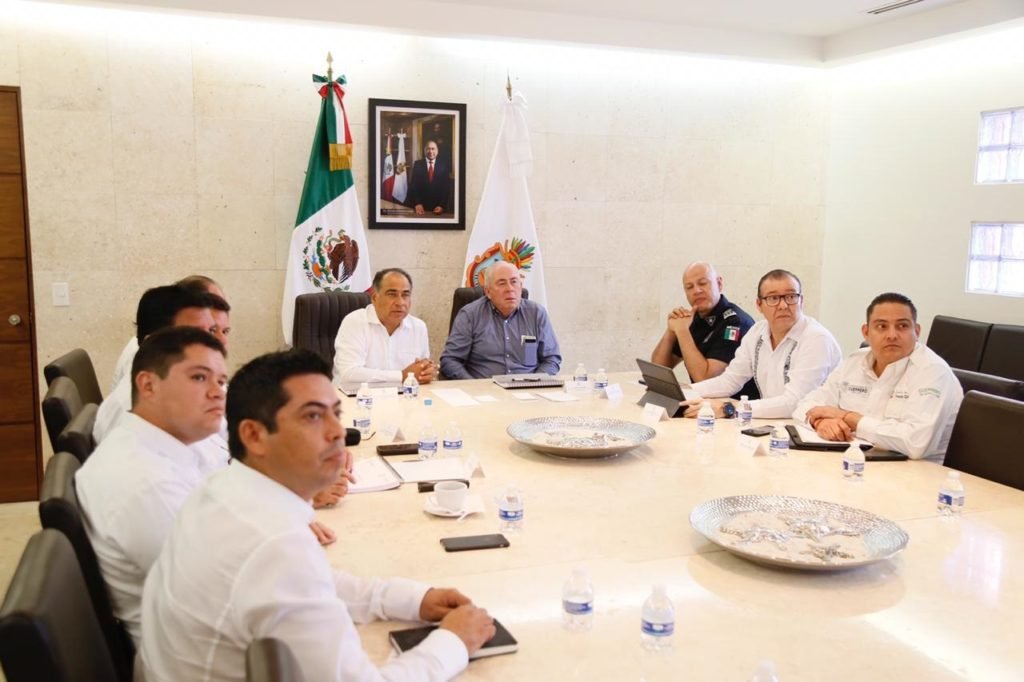 * El gobernador Héctor Astudillo y el titular del Sistema Nacional de Seguridad Pública, Leonel Cota, hablan sobre posibles lugares para edificarlo