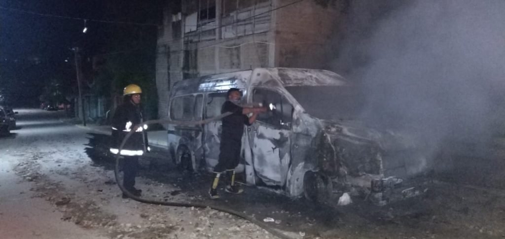 Al arribar, una urvan de transporte público quedó calcinada en su totalidad, mientras que un coche Nissan tipo Sentra solo fue pérdida parcial.