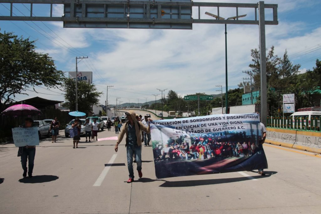 Una treintena de afiliados a la Asociación de Sordos y Discapacitados realizaron dos bloqueos en vialidades de Chilpancingo, para demandar al gobierno del presidente Andrés Manuel López Obrador el pago trimestral de apoyos a miembros de ese sector de población vulnerable que les adeudan desde enero pasado.