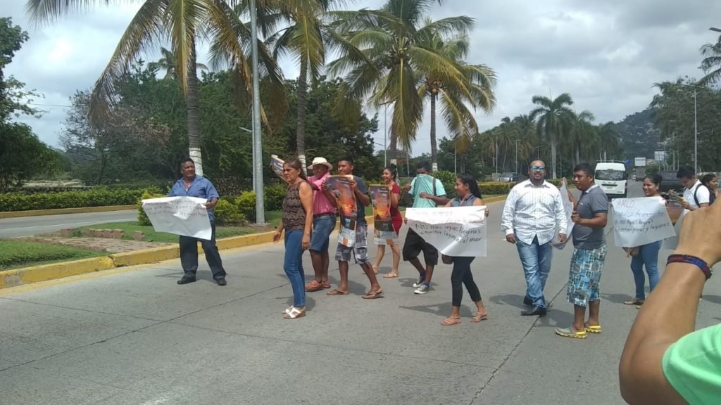 ACAPULCO.— Restauranteros, hoteleros y prestadores de servicios turísticos de Pie de la Cuesta bloquearon el bulevar de Las Naciones, en la zona Diamante, para exigir a las autoridades que resuelvan el problema de descargas de aguas residuales que bajan de las partes altas de la zona poniente hacia la laguna, ya que afecta la imagen turística del lugar.