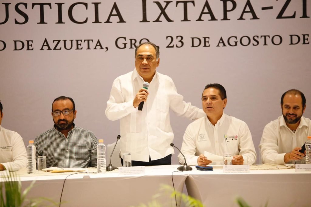 Ambos mandatarios encabezaron este viernes una Mesa de Seguridad y Justicia en la que participaron integrantes de la Fundación SOS, así como hoteleros, representantes turísticos y empresarios, en un salón de un hotel de Ixtapa.