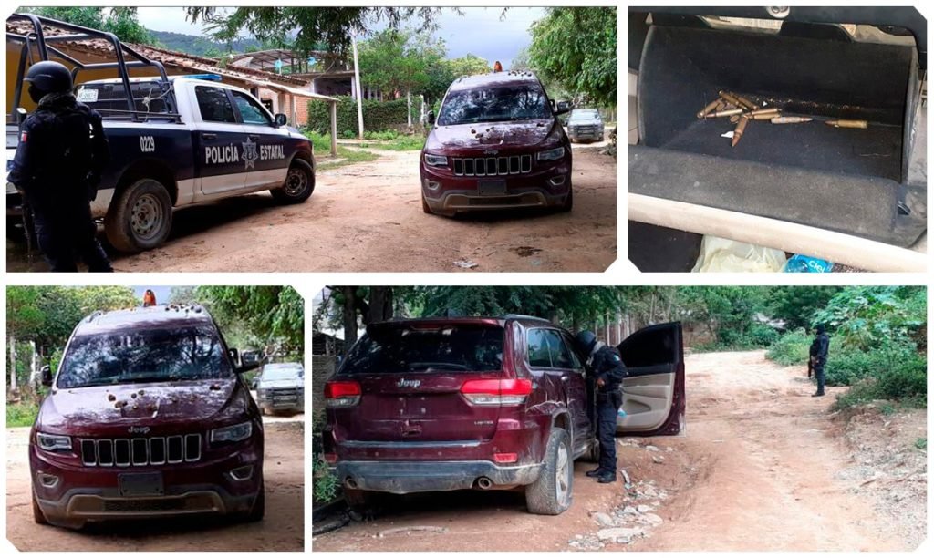 Elementos de la Policía Estatal y del Ejército aseguraron cartuchos útiles de uso exclusivo del Ejército, Marina y Fuerza Aérea y un vehículo relacionado con hechos delictivos, en una brecha de terracería que conduce a la localidad de Ocote de Peregrino, en el municipio de Petatlán.