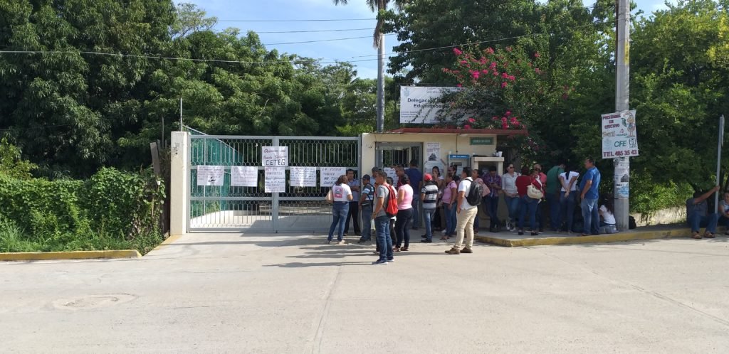 TECPAN.— Maestros de la Coordinadora Estatal de Trabajadores de la Educación en Guerrero (CETEG), tomaron las oficinas que alberga la delegación de los Servicios Educativos en la Costa Grande, para denunciar que la Secretaría de Educación en Guerrero (SEG), no les ha cumplido y resuelto diversos problemas que hay en diferentes centros educativos en esta región del estado.