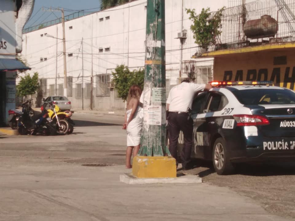 Luego de llamar al 911, y tras casi media hora, elementos de la Policía Municipal llegaron y dialogaron con ella. Ahí se pudo saber que no era de Acapulco, si bien se negó a decir de donde era originaria.