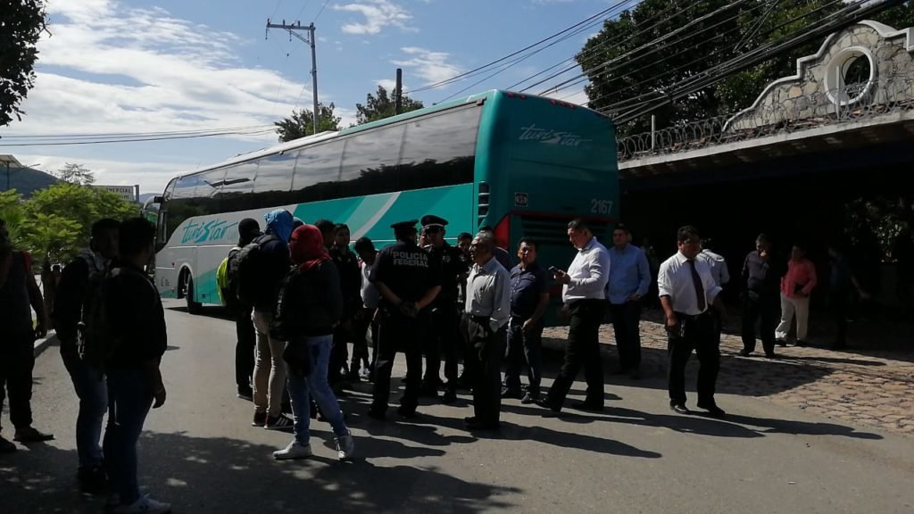 Los normalistas llegaron a ese lugar, donde habitualmente despacha el titular de la SEG, Arturo Salgado Urióstegui, alrededor de las 10 de la mañana a bordo de tres autobuses, uno de ellos se quedó en los carriles laterales y bloqueó completamente esa vialidad, en tanto otros dos bloquearon los dos carriles de alta velocidad del bulevar, por lo que la circulación vial quedó interrumpida en dirección norte-sur.