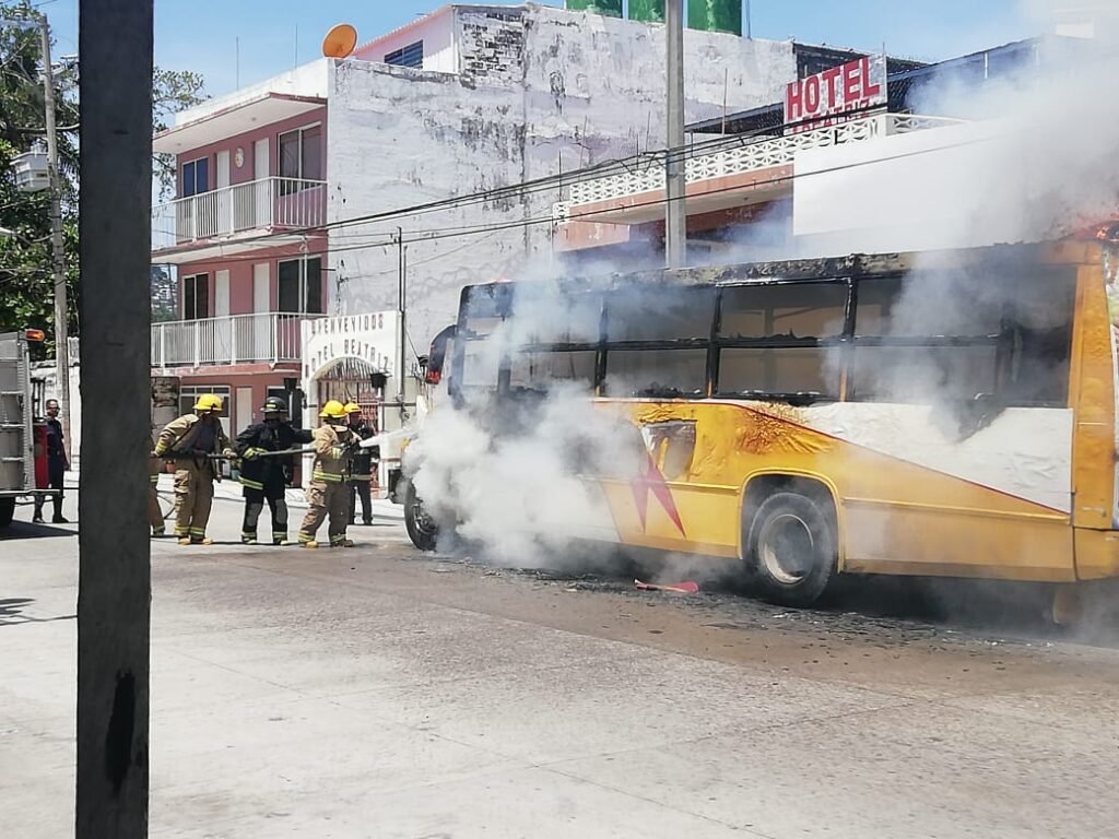 ACAPULCO. — Hombres desconocidos interceptaron al conductor de un autobús de pasajeros, lo bajaron e incendiaron la unidad en la calle Vasco Núñez de Balboa esquina con Diego Hurtado de Mendoza, en el Fraccionamiento Hornos