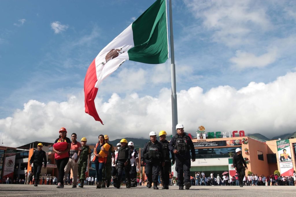 Minutos antes se realizó una ceremonia en la explanada del palacio de gobierno, donde se izó la bandera nacional a media asta y se colocó una ofrenda floral, en memoria a las víctimas de los sismos de 1985 y 2017.