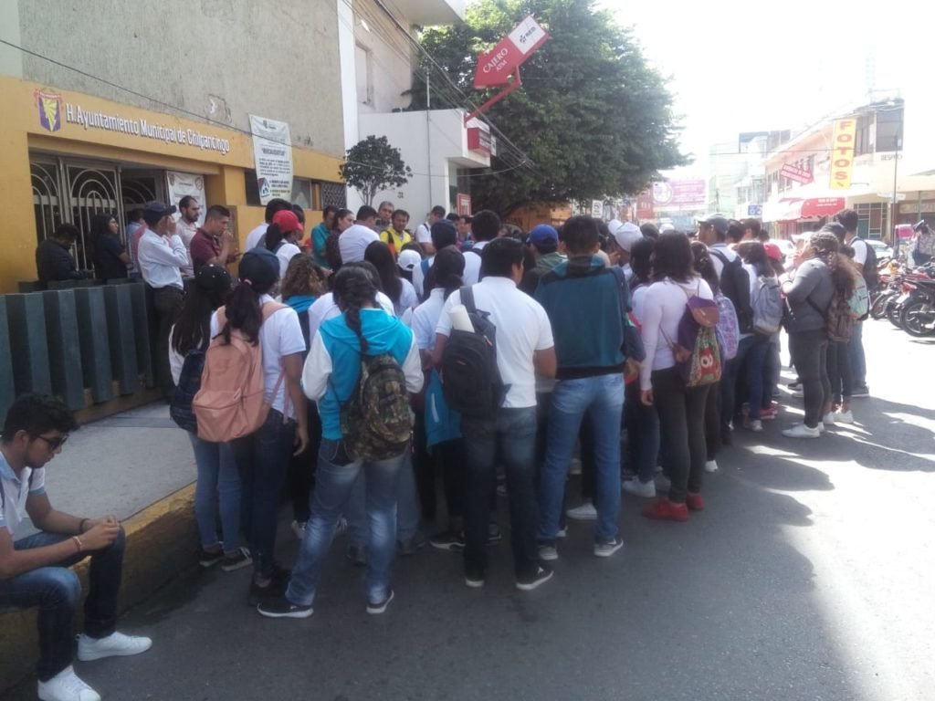 Estudiantes de la Escuela Normal “Rafael Ramírez” bloquearon la avenida Ignacio Ramírez, a la altura del Palacio Municipal, en demanda de que el alcalde, Antonio Gaspar Beltrán, les pague un apoyo que les prometió para celebrar el aniversario de su institución educativa.