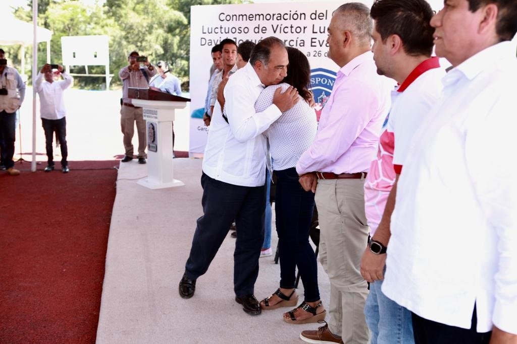 * El gobernador encabezó un homenaje a David García Evangelista, futbolista de 14 años de Los Avispones, y Víctor Lugo, chofer del autobús que los transportaba, quienes murieron durante los ataques registrados hace 5 años