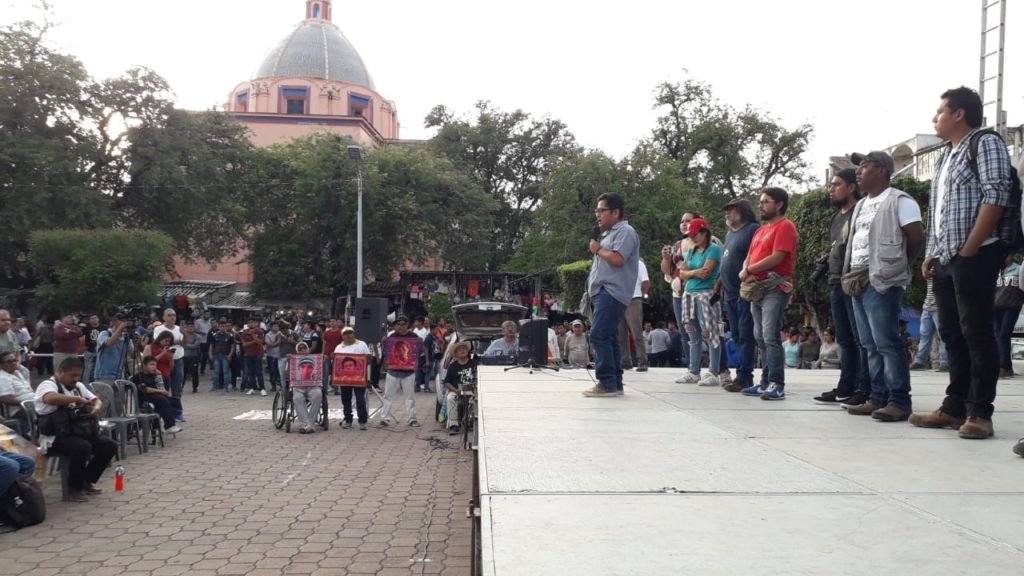 Durante el mitin que se desarrolló este 27 de septiembre en el zócalo de esta ciudad, en representación del gremio periodístico, Jesús Saavedra Lezama, reportero de “El Sol de Chilpancingo”, hizo un llamado a los tres niveles de gobierno a proteger la integridad, tanto de periodistas, como de los padres y madres de los 43, testigos y defensores de derechos humanos.