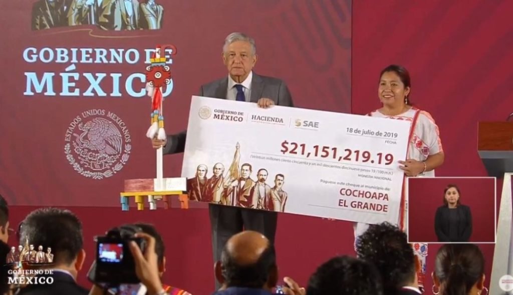 El 18 de julio, el presidente entregó a los alcaldes de ambos municipios cheques por la cantidad de 21 millones 151 mil 219 pesos con 19 centavos, pero recientemente el de Metlatónoc, Zeferino Villarreal, y la presidente de Cochoapa, Edith López Rivera, denunciaron que a más de dos meses no habían recibido el dinero y sólo tenían los “chequesotes” de cartón.
