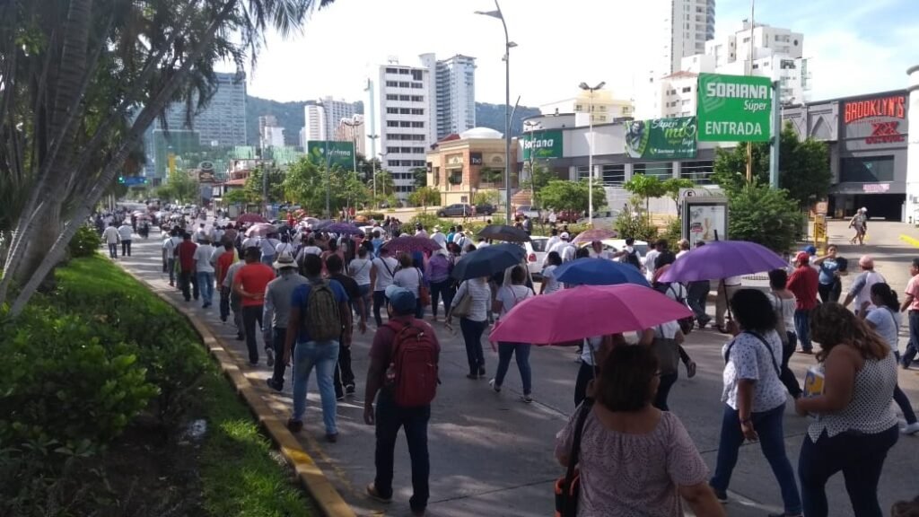Alrededor de las 10:00 horas, unos 600 trabajadores afiliados a las ocho secciones sindicales del SUSPEG iniciaron una marcha del Centro Internacional Acapulco (CIA) con dirección a la glorieta de la Base Naval.