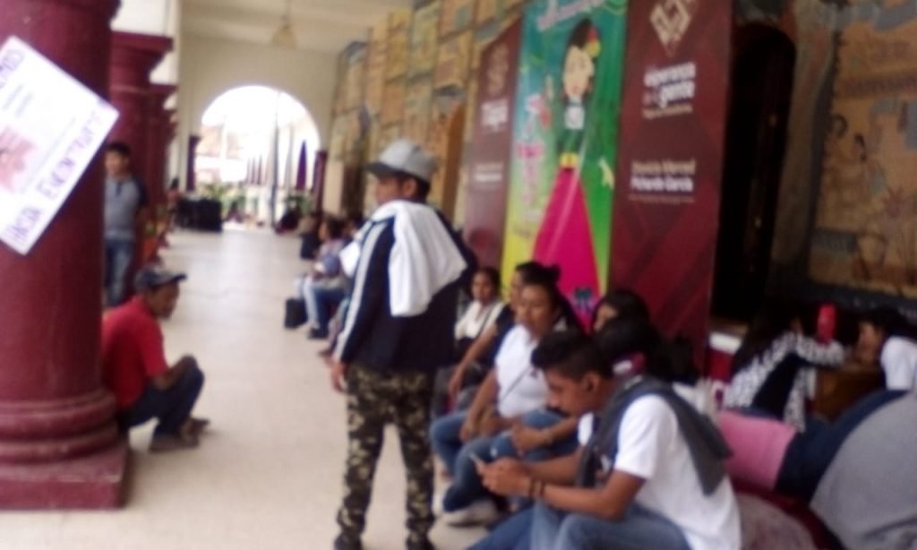 Los manifestantes llegaron a las oficinas del ayuntamiento alrededor de las 11 de la mañana, extendieron lazos en el pórtico y colgaron pancartas con consignas en las que responsabilizaron a las autoridades de los tres niveles de gobierno por la desaparición de su compañero.