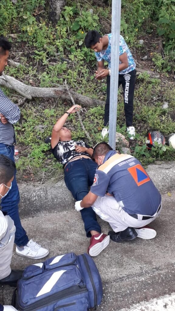 Automovilistas que pasaban por el lugar se dieron cuenta de los hechos y dieron parte al número de emergencia 911, al poco rato llegaron paramédicos de la Secretaría de Protección Civil, quienes lo auxiliaron. Presentaba posible fractura de la pierna derecha y golpes contusos en diferentes partes del cuerpo, siendo trasladado de urgencia a un hospital de esta capital para su atención médica.