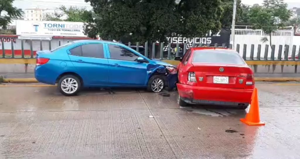 Aproximadamente a las 18:00 horas, el conductor de un vehículo de la Volkswagen, tipo Derby, de color rojo con placas de Guerrero, iba a exceso de velocidad en el carril norte-sur, así que al pasar por ese sitio perdió el control—aunado a que estaba cayendo una pertinaz lluvia—, se fue a estampar contra el muro de contención y luego contra un auto de la Chevrolet, tipo Aveo, de color azul.