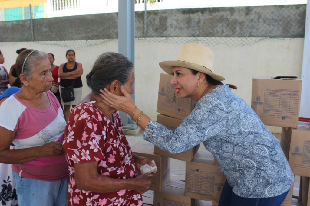 Acapulco, Gro., 14 de octubre de 2019.- La presidenta del Sistema Municipal para el Desarrollo Integral de la Familia (DIF), Adriana Román Ocampo, entregó apoyos alimentarios a los vecinos de los poblados Paso Limonero y La Mica.