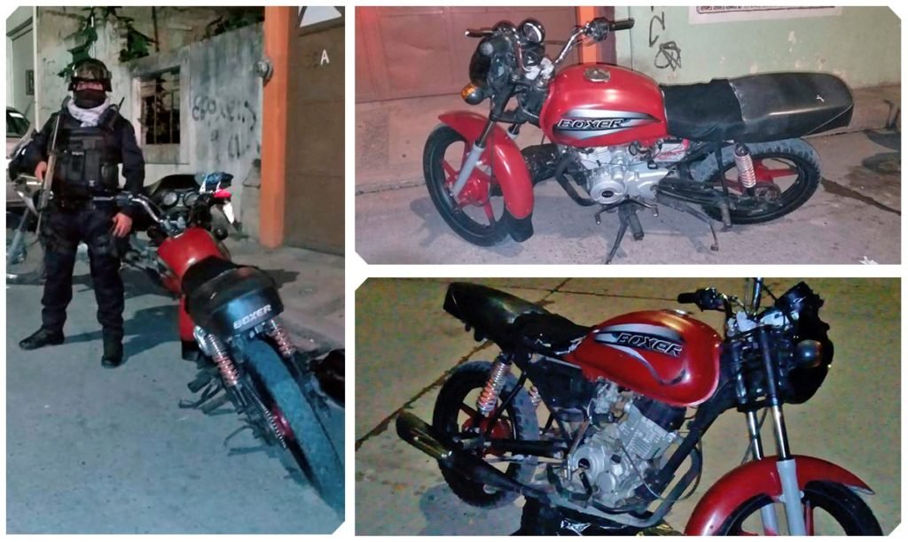 Al realizar recorridos para prevenir la comisión de delitos en el barrio de San Francisco, los uniformados localizaron la motocicleta de la marca Bajaj, tipo Boxer 150, color negro con rojo, modelo 2015, que cuenta con reporte de robo en el Registro Público Vehicular (REPUVE) de fecha 15 de septiembre del presente año, por lo que fue puesta a disposición de la Agencia Especializada en Robo y Recuperación de Vehículos de la Fiscalía General del Estado en Chilpancingo.