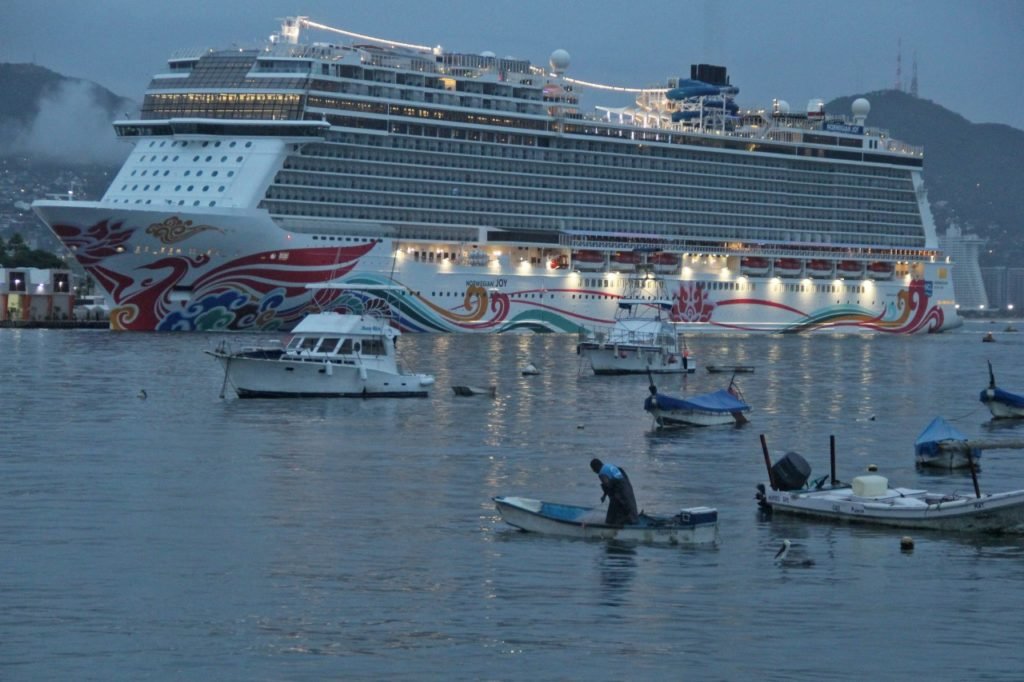 ACAPULCO.— Con más de 5 mil personas a bordo, entre tripulantes y pasajeros, este jueves llegó a la bahía de Acapulco el crucero “Norwegian Joy”, el tercero de la temporada de arribo de transatlánticos.