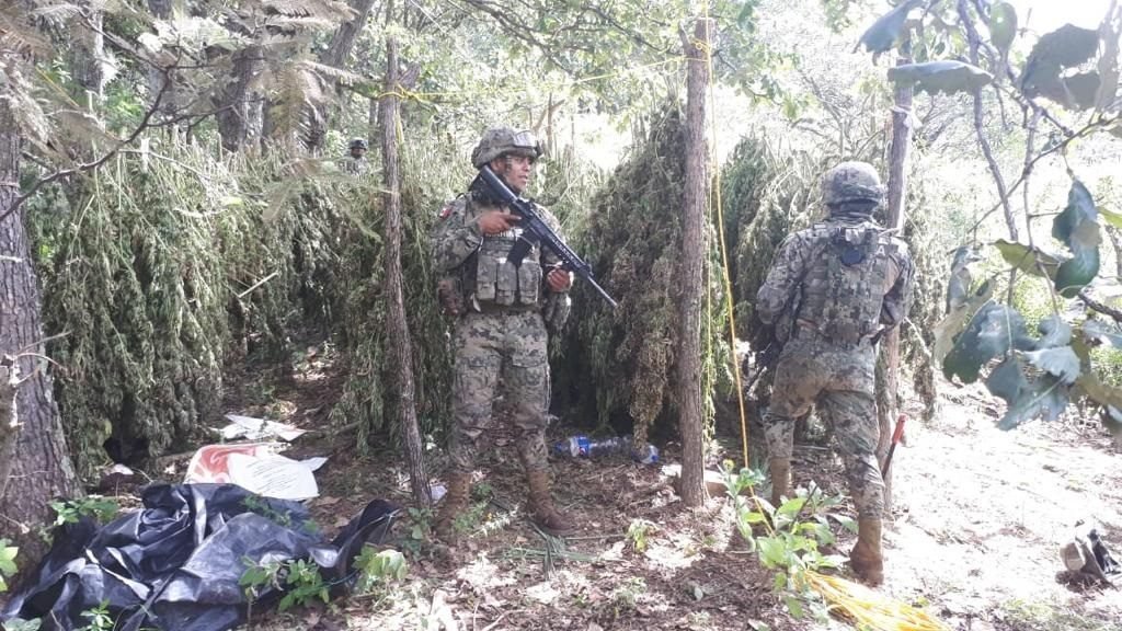 La Secretaría de Marina-Armada de México informó que estas acciones se realizan en apoyo a las operaciones de erradicación de enervantes de la Secretaría de la Defensa Nacional (Sedena).