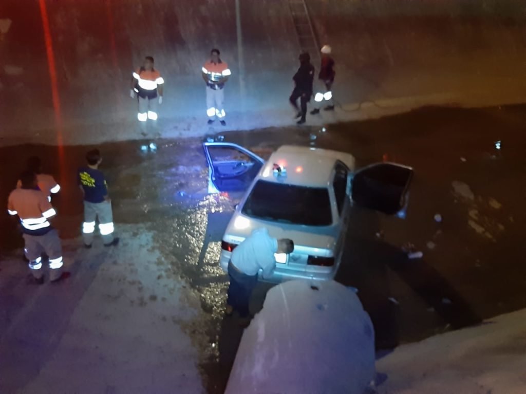 Sin embargo, cuando pasaron por ese sitio, en el carril norte a sur del bulevar René Juárez Cisneros, la conductora perdió el control del volante y se precipitó al interior del canal.