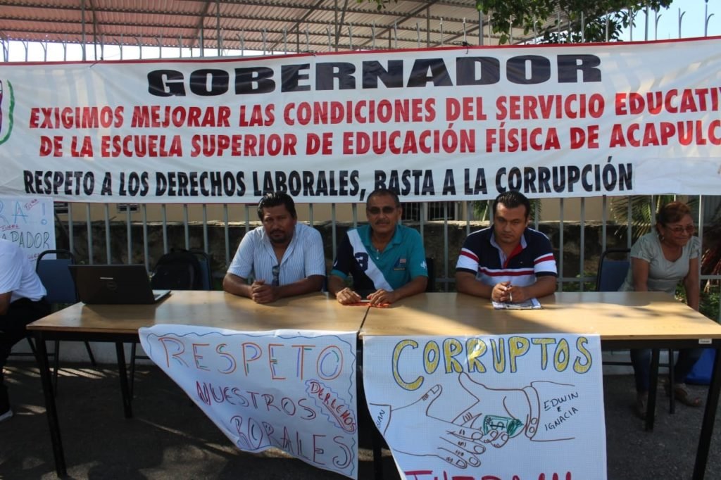 ACAPULCO.— Maestros adheridos al Sindicato Único de Servidores Públicos del Estado de Guerrero (SUSPEG) de la Sección 47, pararon labores en la Escuela Superior de Educación Física (ESEF), para protestar por dos directivos que fueron retirados del cargo.